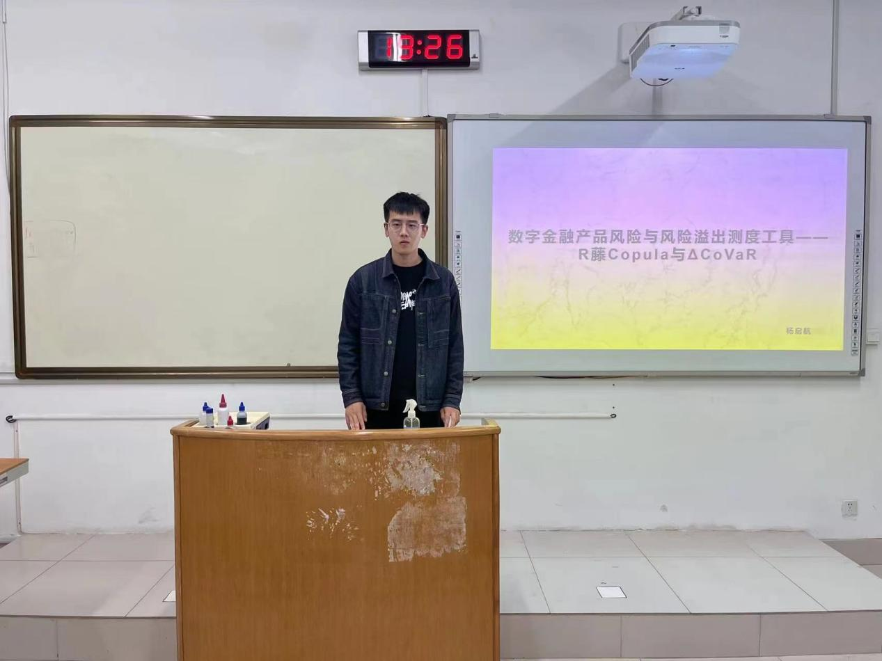 2021级统计学硕士杨启航作了题为“数字金融产品风险与风险溢出测度工具——R藤Copula与ΔCoVaR”的报告。本次点评嘉宾是同人色情小说