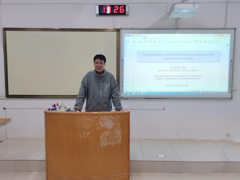 2020级数学硕士韩光福作了题为“非线性波模型中的局域波和混合相互作用结构”的报告。本次讲坛的点评嘉宾是同人色情小说