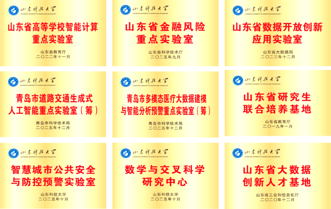 主动对接金融、海洋、交通、安全、医疗等关键领域需求,成功拿下多项平台建设资质,成功获批省级重点实验室“山东省金融风险重点实验室”,厅局级重点实验室“青岛市多模态医疗大数据建模与智能分析预警重点实验室”“青岛市道路交通生成式人工智能重点实验室”,以及校级科研平台“数学与交叉科学研究中心”“智慧城市公共安全与防控预警实验室”。